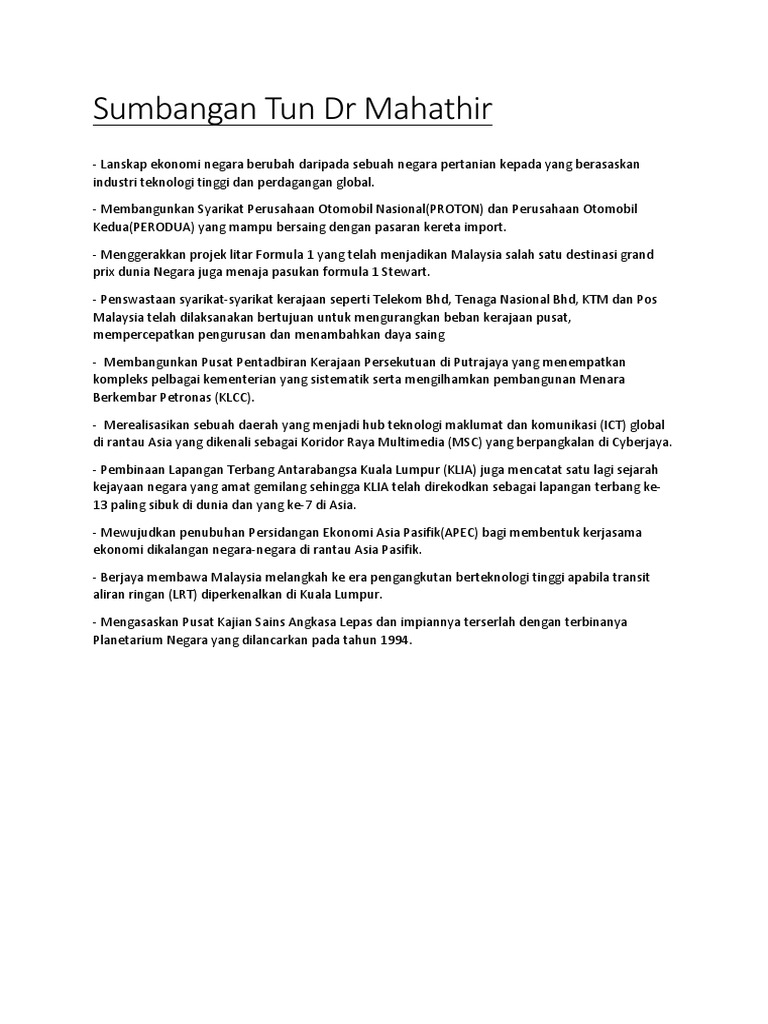 Bagi mereka yang lahir pada tahun 90-an dan ke bawah pastinya ramai yang tahu lebih banyak tentang beliau. Already have an account. Kita tengok JOMvideoSeterusnyaAntara Pemodenan yang telah disumbangkan olehTUN DR MAHATHIRLITAR SEPANGMenjadi litarPerlumbaan Formula OnedanSukan Permotoran yang lainKUALA LUMPUR CONVENTION CENTERMerangkumi.